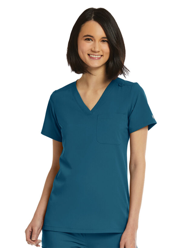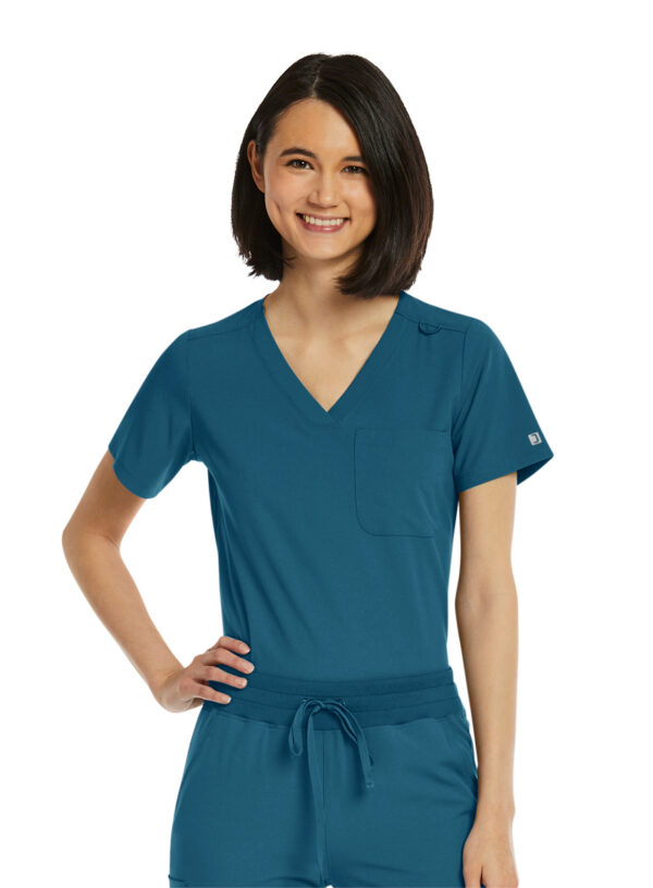 - Women’s curved V-neck scrub top