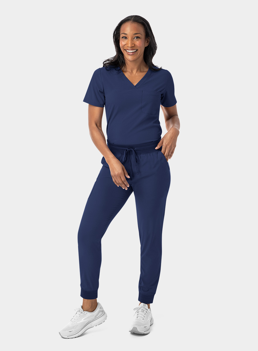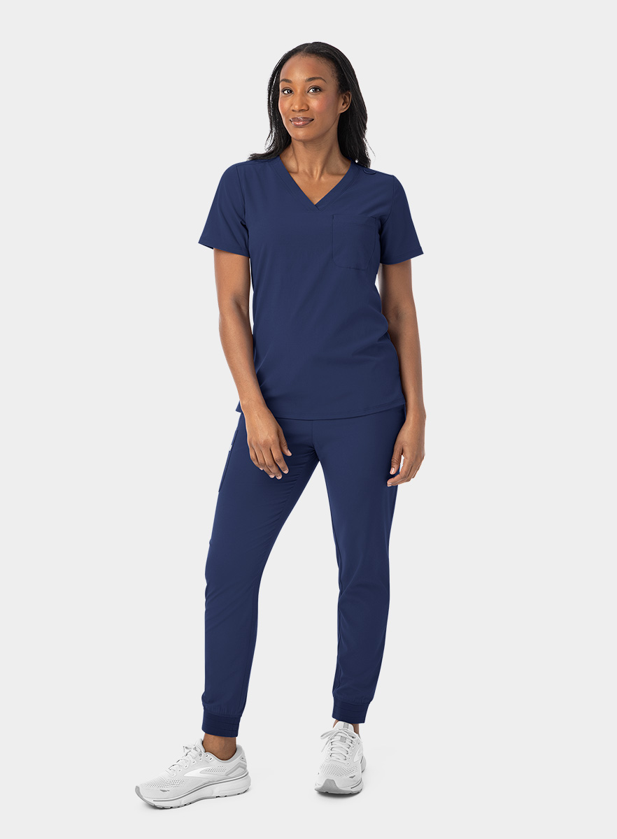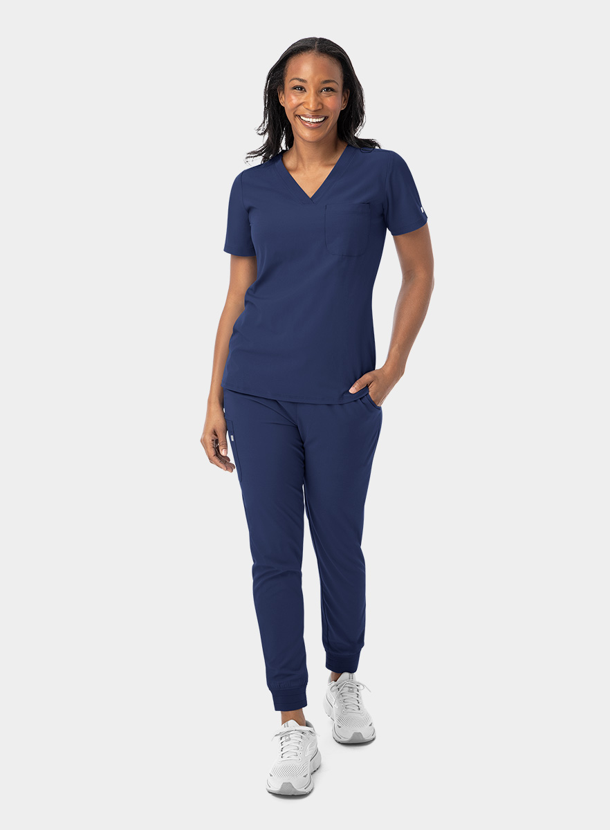 Our popular Fitted One Pocket Scrub Top for Women features a flattering, fitted style made from our classic cozy & stretchy fabric. Find the perfect complement for this top with our bestselling jogger scrub pants. Lose the old traditional boxy scrubs and get comfortable wearing ScrubJoy!