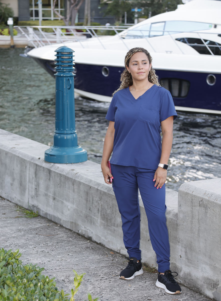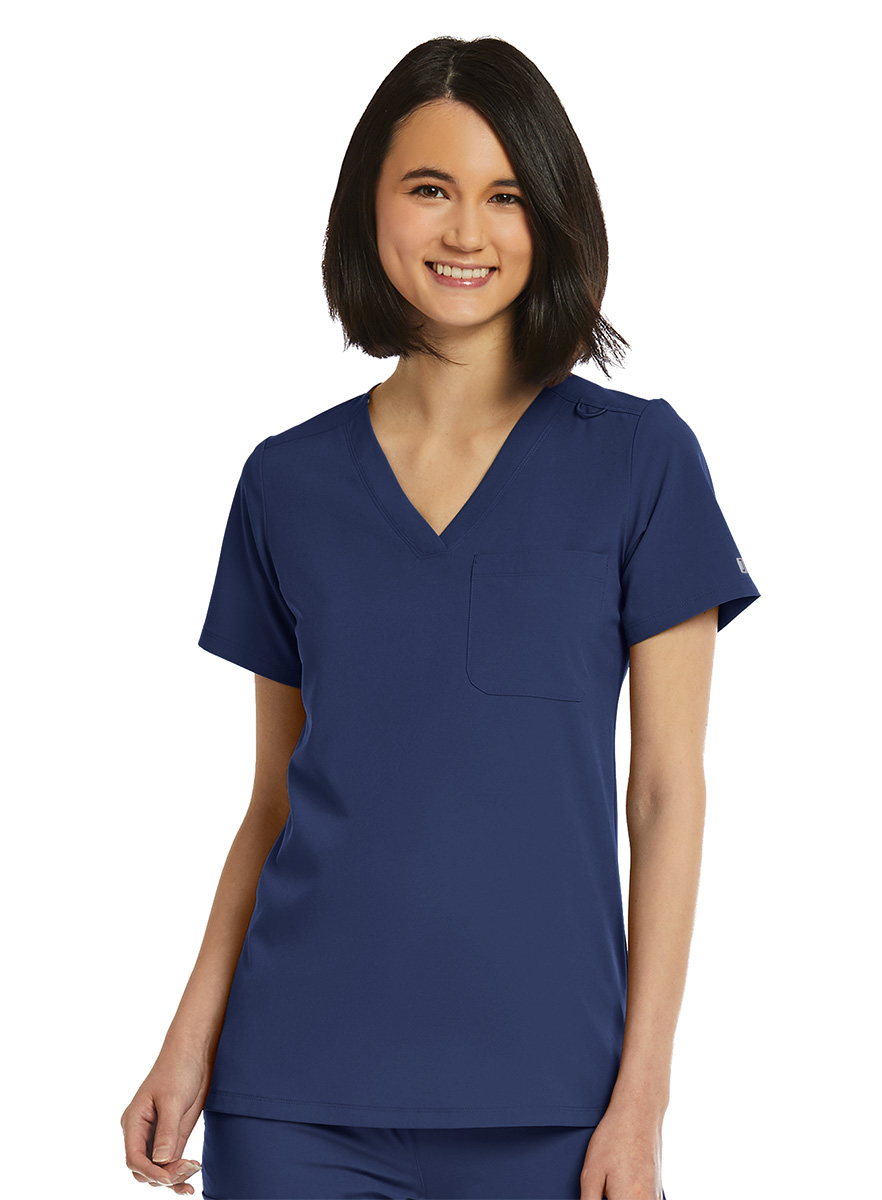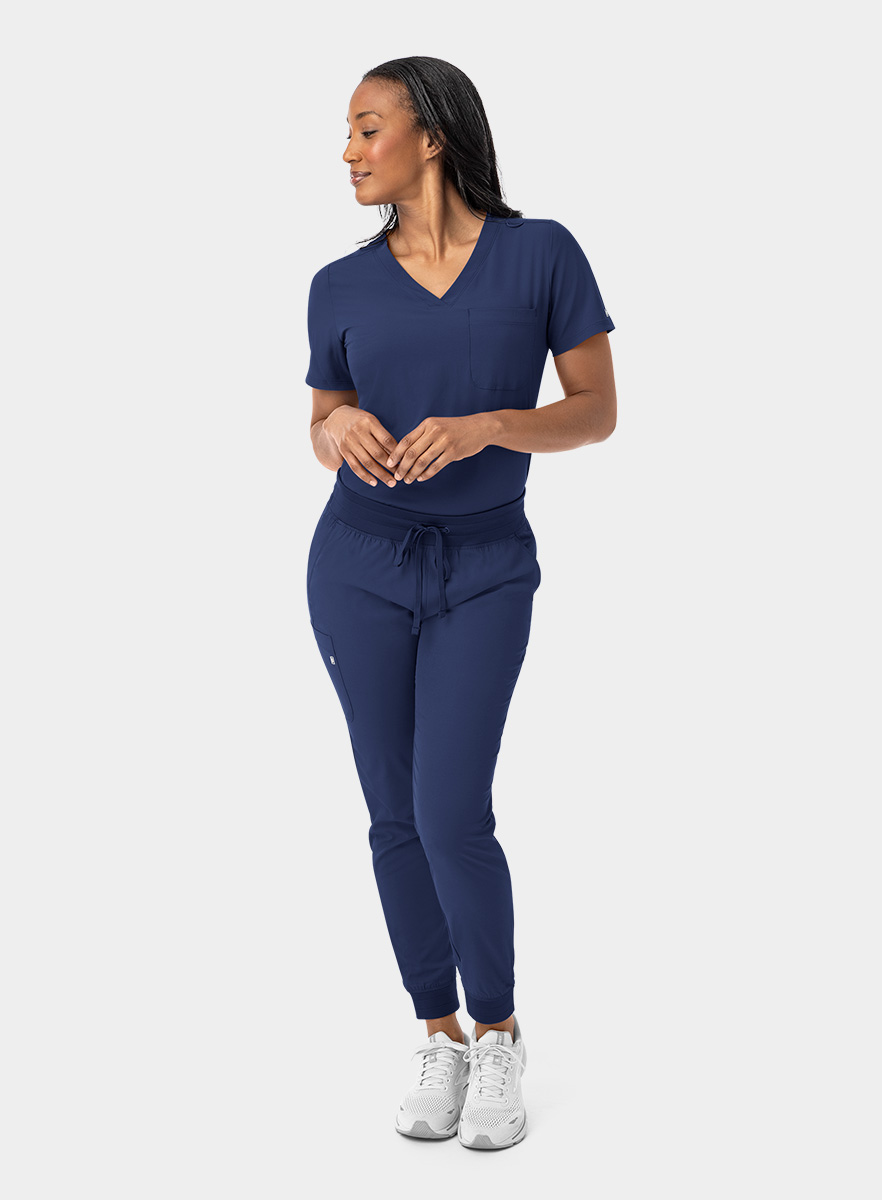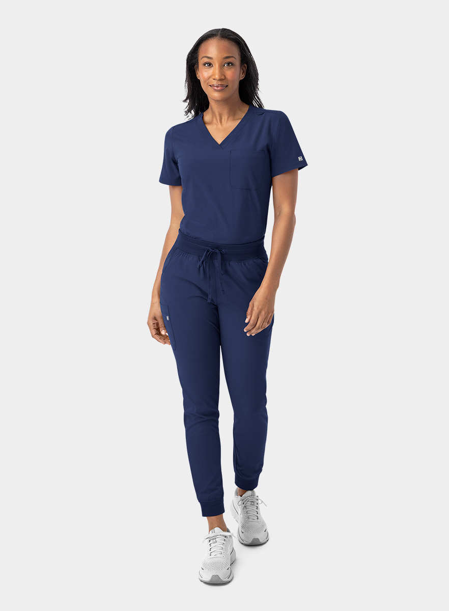 Our popular Fitted One Pocket Scrub Top for Women features a flattering, fitted style made from our classic cozy & stretchy fabric. Find the perfect complement for this top with our bestselling jogger scrub pants. Lose the old traditional boxy scrubs and get comfortable wearing ScrubJoy!