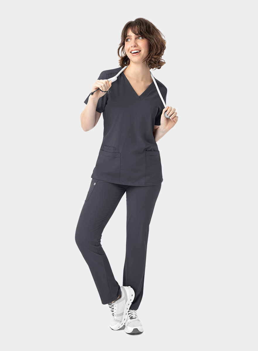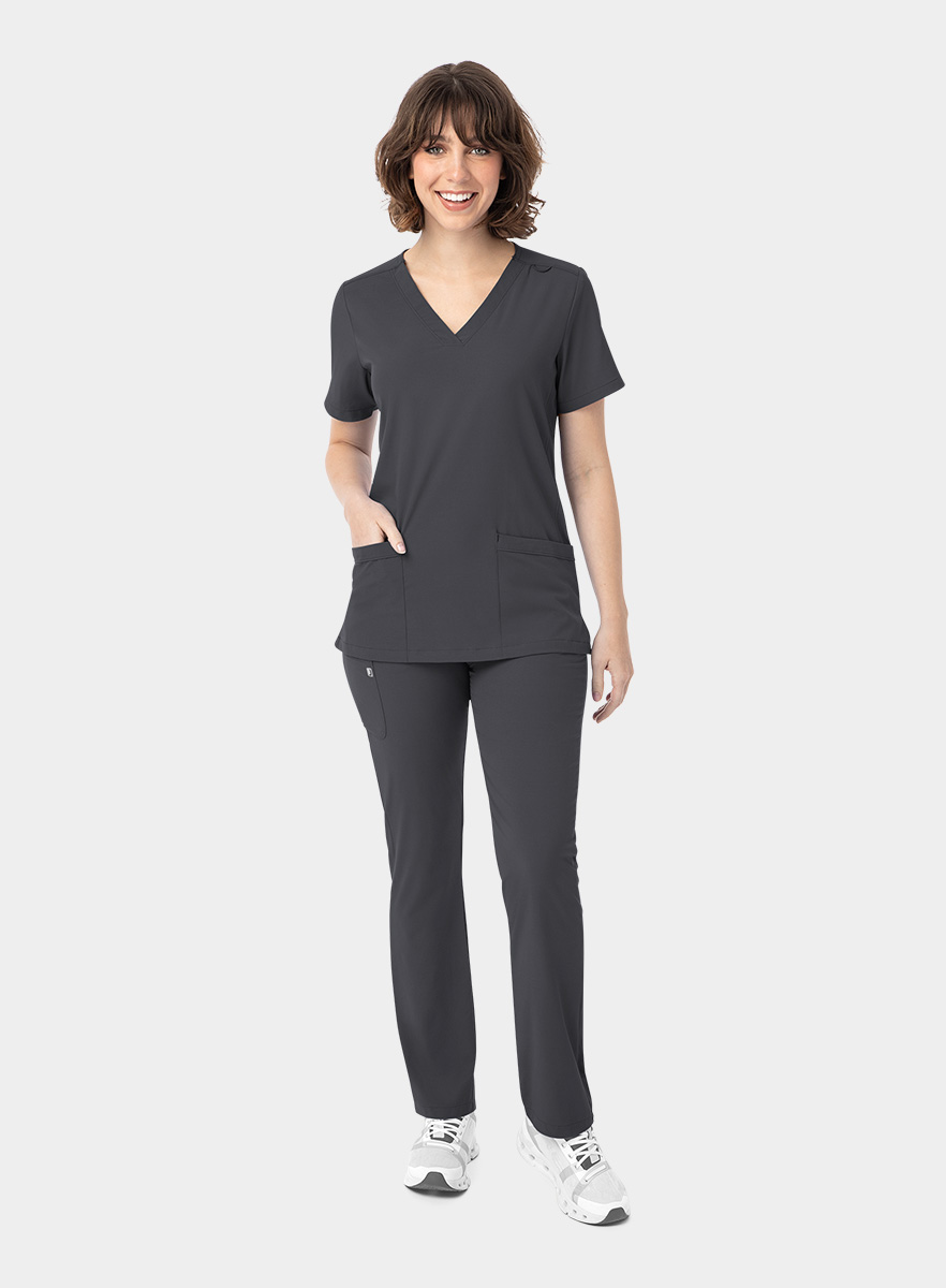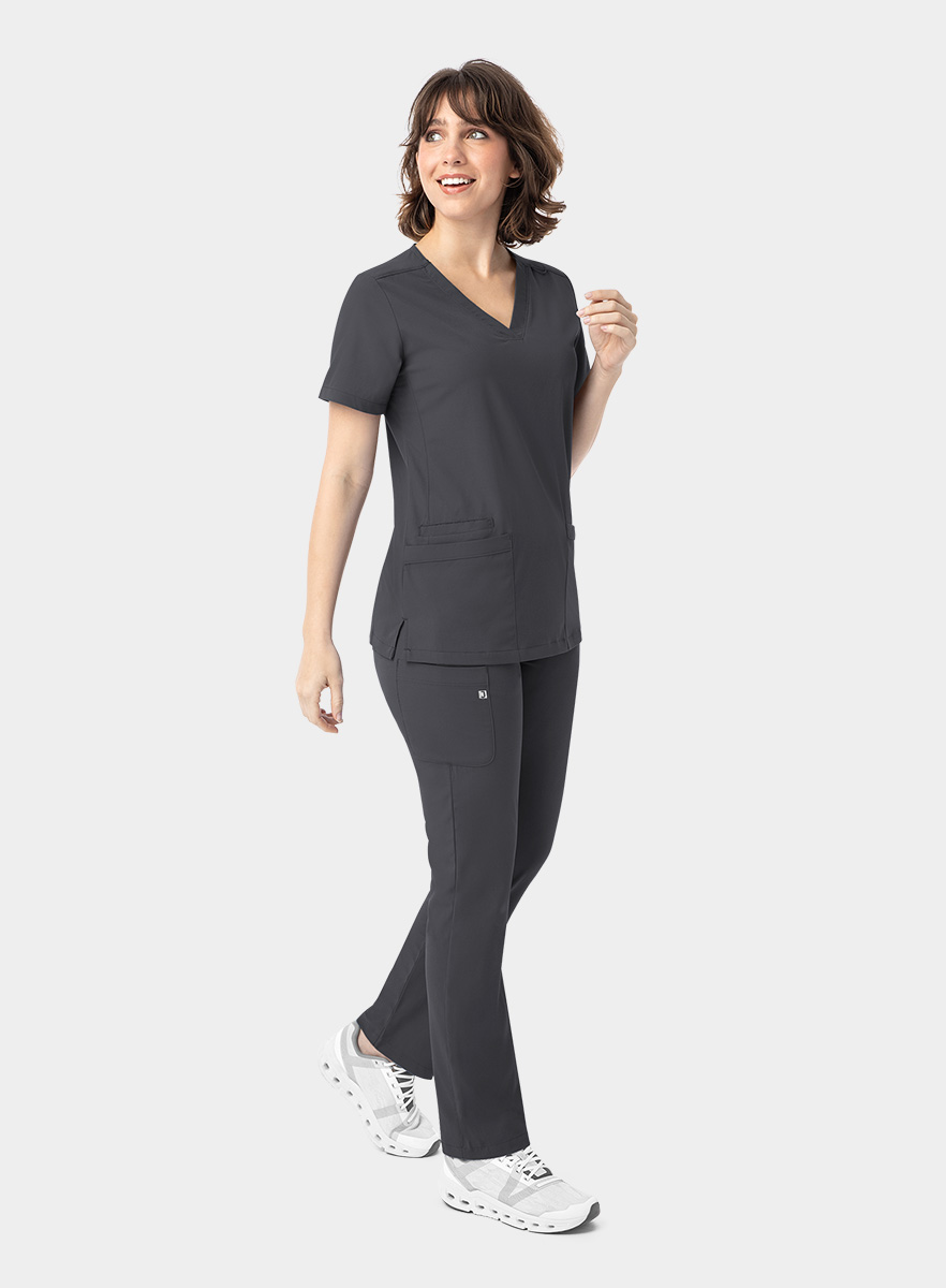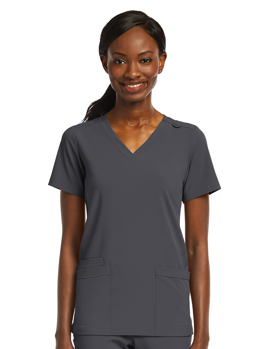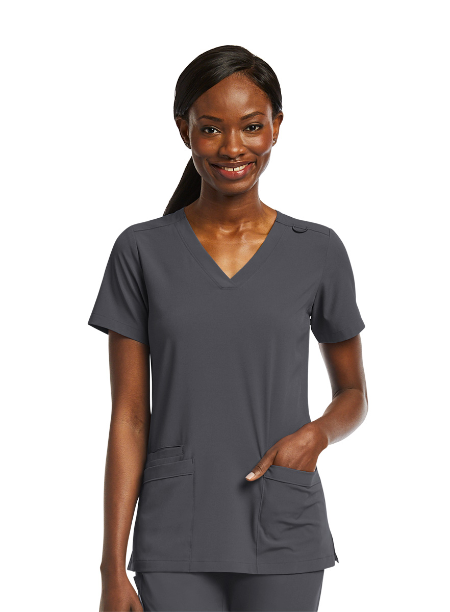 Our Fitted Two Pocket Scrub Top for Women is the perfect blend of fit & function. Featuring the comfortable, stretchy ScrubJoy fabric and 2 main pockets + a bonus welt pocket!